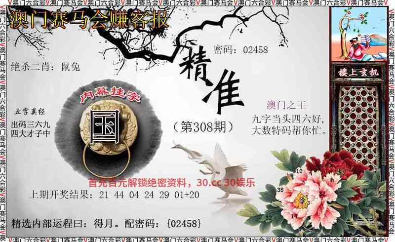 309期:绝杀两合💓04.08合💓开:鼠06准